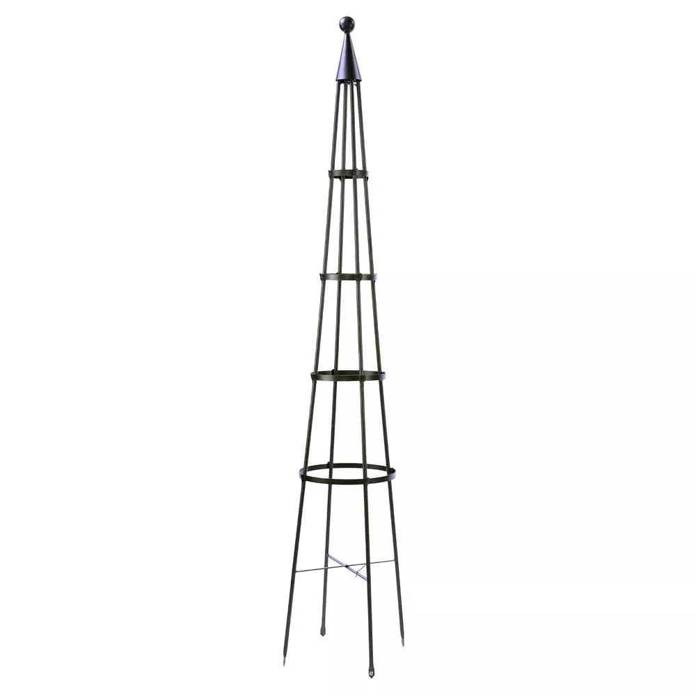 Create an elegant garden with a handcrafted wrought-iron trellis by Achla Designs. We make a wide variety of sizes and decorative styles to fit every garden, offering the functionality of a sturdy plant support and the artistic beauty of an elegant wrought iron structure. With their pointed tops and ball-shaped finials, the Obelisk trellises have a playful storybook architecture reminiscent of secret gardens and enchanted forests. Plant with morning glory, sweet peas or fragrant climbing jasmine. Available in two sizes.