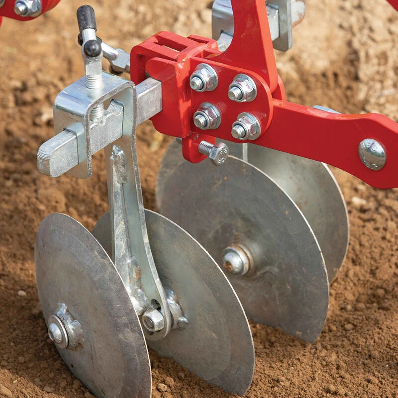 For use with Terrateck Wheel Hoes only. Great for hilling young seedlings such as peas, beans, onions, and leeks. Includes set of two 5 1/2″ concave discs, two 5 1/2″ flat discs, 10″ toolbar, and two Y-bolts. Made in France by Terrateck.