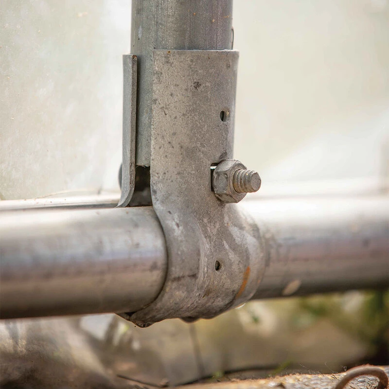 Commonly used to build dog kennels and similar enclosures, these useful clamps can be used for a multitude of projects around the farm. Used in our design plans for the Quick Hoops™ moveable “Cathedral” high tunnel. Includes 5/16″ x 2″ carriage bolt and nut. 1 3/8″ x 1 3/8″. 10 count.
